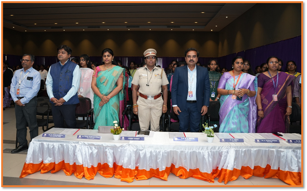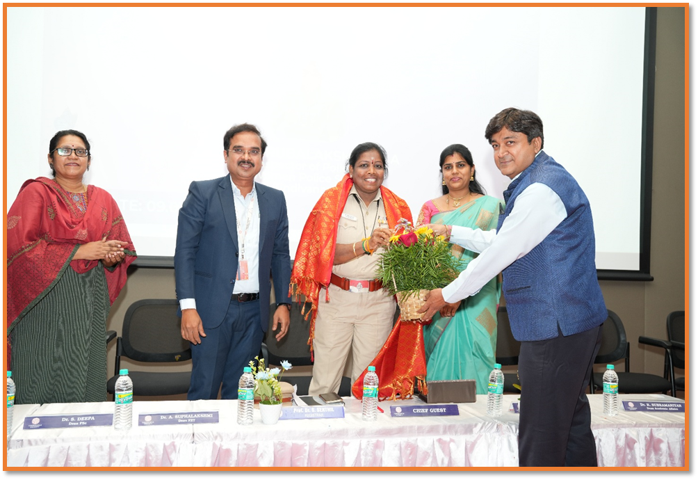 As a mark of respect and appreciation, the Chief Guest, J. Kirubalakshmi, Inspector of Police, All Women Police Station, Tindivanam, was formally honored by the university dignitaries. The gesture reflected the institution’s sincere gratitude for her esteemed presence and valuable contribution to the International Women’s Day celebration.
