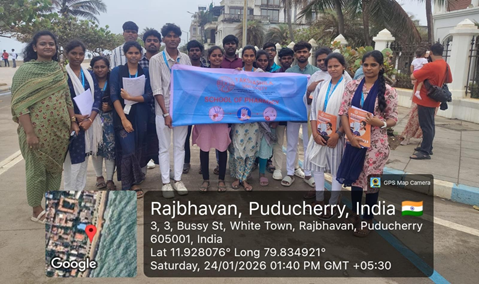 As part of Road Safety Month, the School of Pharmacy, Takshashila University organized a Road Safety Awareness Programme on 24 January 2026 at Rock Beach, Puducherry. The initiative aimed to promote awareness on road safety and the prevention of road traffic accidents.